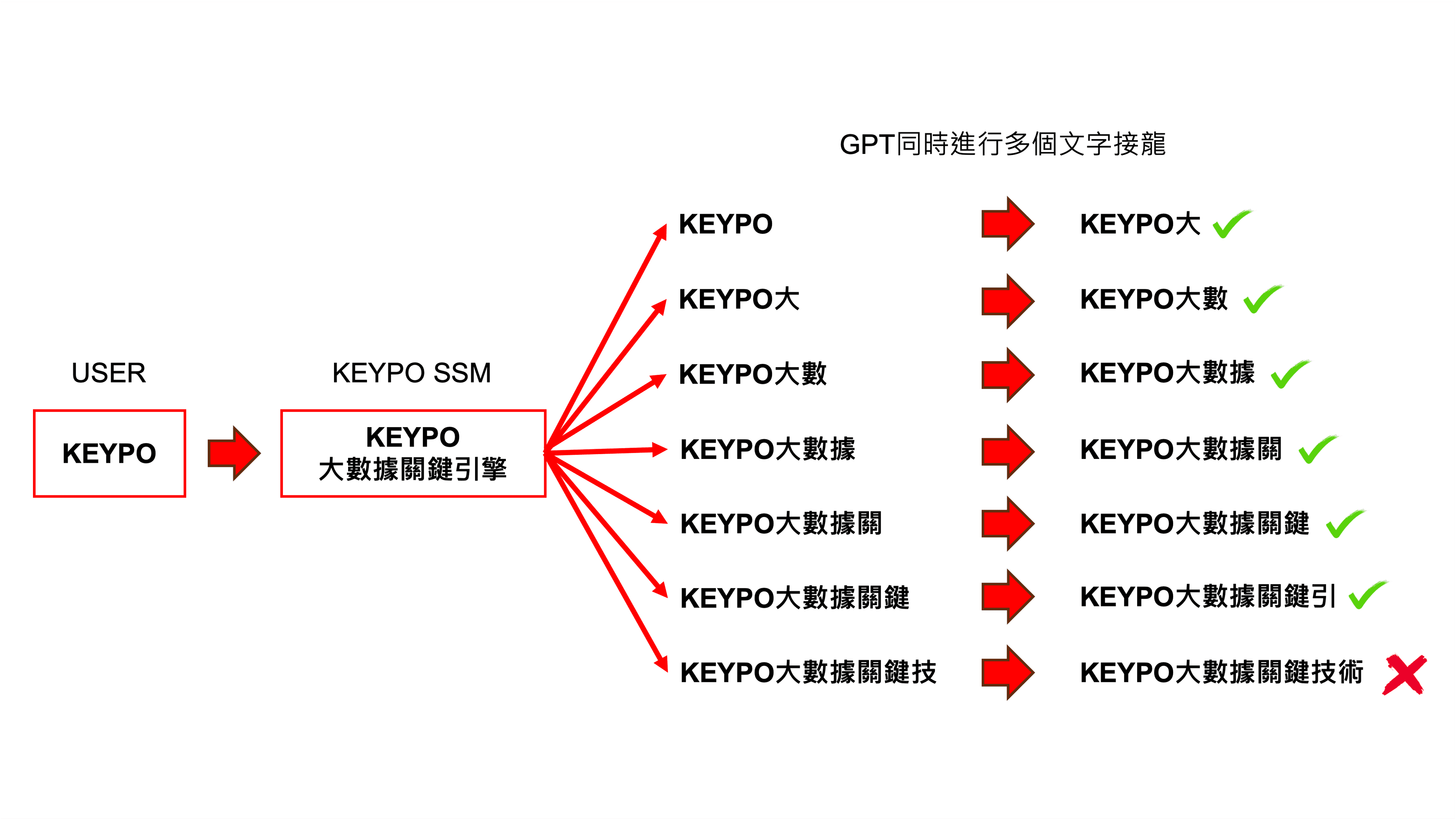 為求在不失生成品質情況下,提升大型語言模型的生成速度,投機解碼(Speculative Decoding)的相關機制也蘊育而生,並能廣泛運用在許多大型語言模型上,而非單一的特定模型。投機解碼的一個核心概念,就是運用快速的小型投機模型(small speculative model, SSM) 預先生成內容,然後讓大型語言模型以平行處理的方式,對於小型投機模型的生成內容進行文字接龍。最終,從所有生成的內容中選擇最合適的部分作為結果。舉例來說,若使用者輸入「KEYPO」,而小型投機模型很快的產生出「大數據關鍵技能」,則可以將「KEYPO大」、「KEYPO大數」、「KEYPO大數據」、「KEYPO大數據關」、「KEYPO大數據關鍵」、「KEYPO大數據關鍵技」、「KEYPO大數據關鍵技能」,都交由大型語言模型預測下一個字。若大型語言模型分別生成「大」、「數」、「據」、「關」、「鍵」、「技」、「能」、「。」,則可以發現大型語言模型預測「KEYPO大數據關鍵」的下一個字是「引」,與小型投機模型生成的「技」不同,但「大數據關鍵」是小型投機模型和大型語言模型皆相同的部份,因此可以使用「大數據關鍵引」作為最終結果的一部分,並再次進行上述的步驟。如此一來,若能妥善運用小型投機模型的生成內容,大型語言模型便有機會在生成單一字詞的時間內產生一段相同品質的內容,進而大幅提高生成速度。