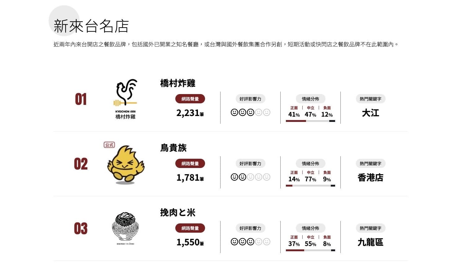「新來台名店」口碑聲量排行榜:https://dailyview.tw/top100/topic/6