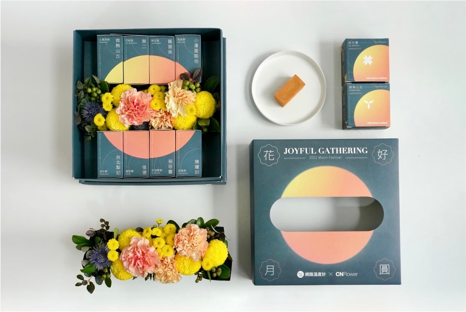 同時,設計團隊更以靜謐的午夜藍為外盒主色,搭配漸層的暖黃月光色,象徵乘載著思念與祝福。禮盒中央特別採用透視的設計,將CNFlower西恩創辦人凌宗湧老師,以「花綻秋宴」為靈感所準備秋節花禮由外至內可以一目瞭然,融入暖黃的明月中,收禮人一收到即能感受中秋豐盛浪漫與美學溫度。隨著禮盒陸續送到客戶和朋友手中,收到的人驚喜之餘也分享到自己的社群媒體,不過禮盒採限量包裝,只送不賣,讓許多人感到可惜。