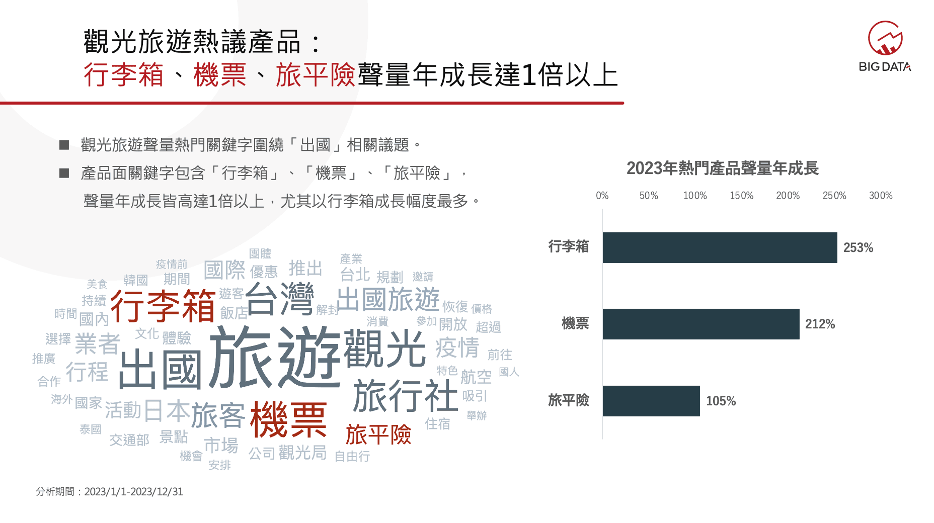 2023年機票聲量年成長2倍以上 行李箱聲量成長動力主要來自直播帶貨
