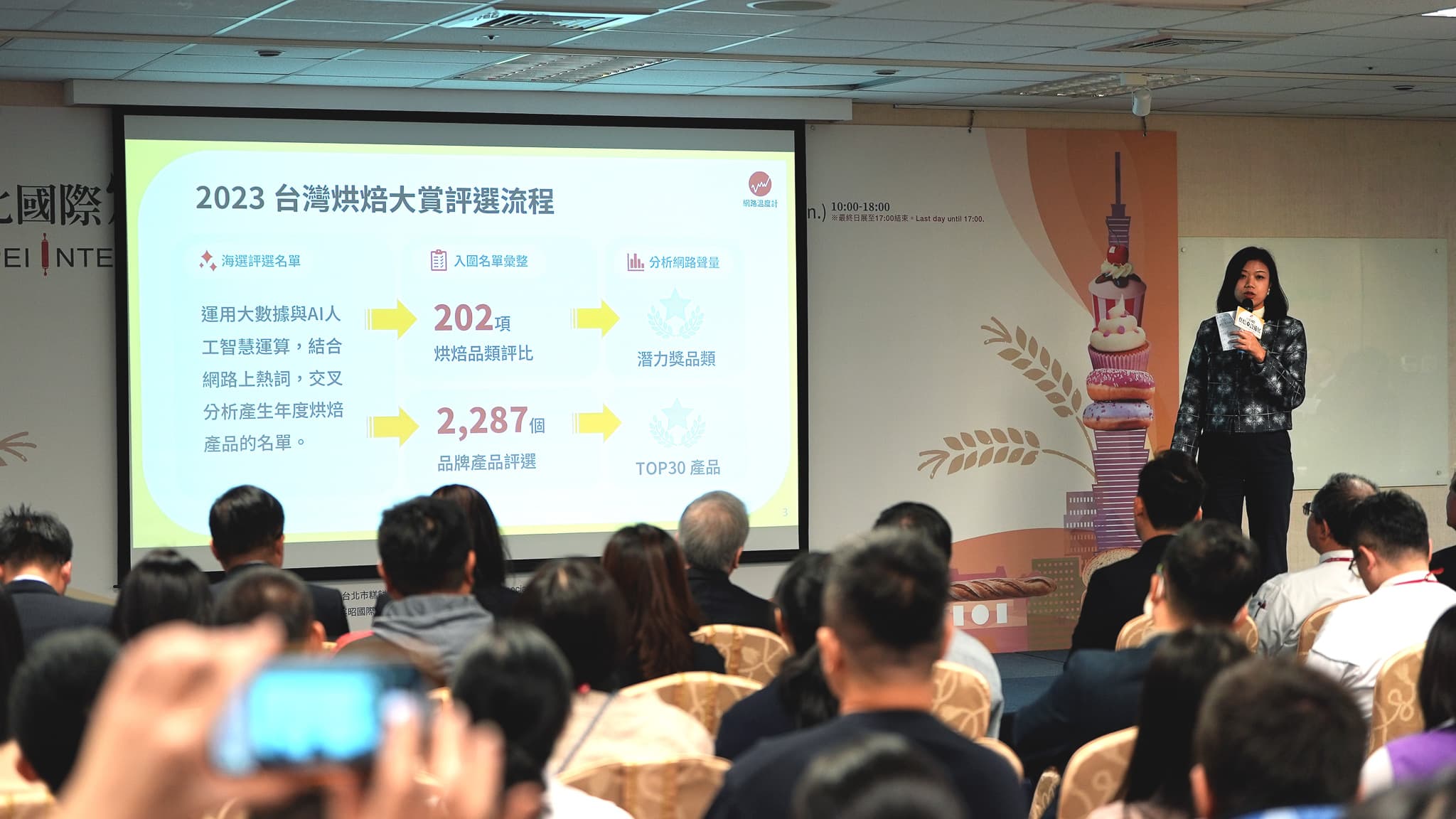 同時,也公布2023年度全台烘焙產品的網路聲量前30名榜單「2024台灣烘焙大賞-TOP30」,攤開本屆榜單,多項蛋黃酥、鳳凰酥等油酥油皮類產品上榜,可見國人對其的喜愛;此外,甜品類烘焙產品依然廣受吃貨青睞,包含已連續多次入榜的Amo阿默典藏蛋糕-荷蘭貴族手工蛋糕、堯平布朗尼-布朗尼組合包、春上布丁蛋糕-經典原味布丁蛋糕,都憑藉單項明星產品,創造橫跨年度的討論聲量!芋頭、乳酪等食材亦成榜單亮點,如嚴選台灣產大甲檳榔心芋為原料製成的先麥芋頭酥,以三分之二厚實芋泥餡給足濃郁風味的香帥蛋糕-經典芋泥卷,全台獨家提供客製「日曆蛋糕」的ChizUP!-招牌黃金起司,運用減法原則實現健康與美味訴求的起士公爵-純粹原味乳酪蛋糕等,皆為烘焙愛好者必須品嚐烘焙產品。