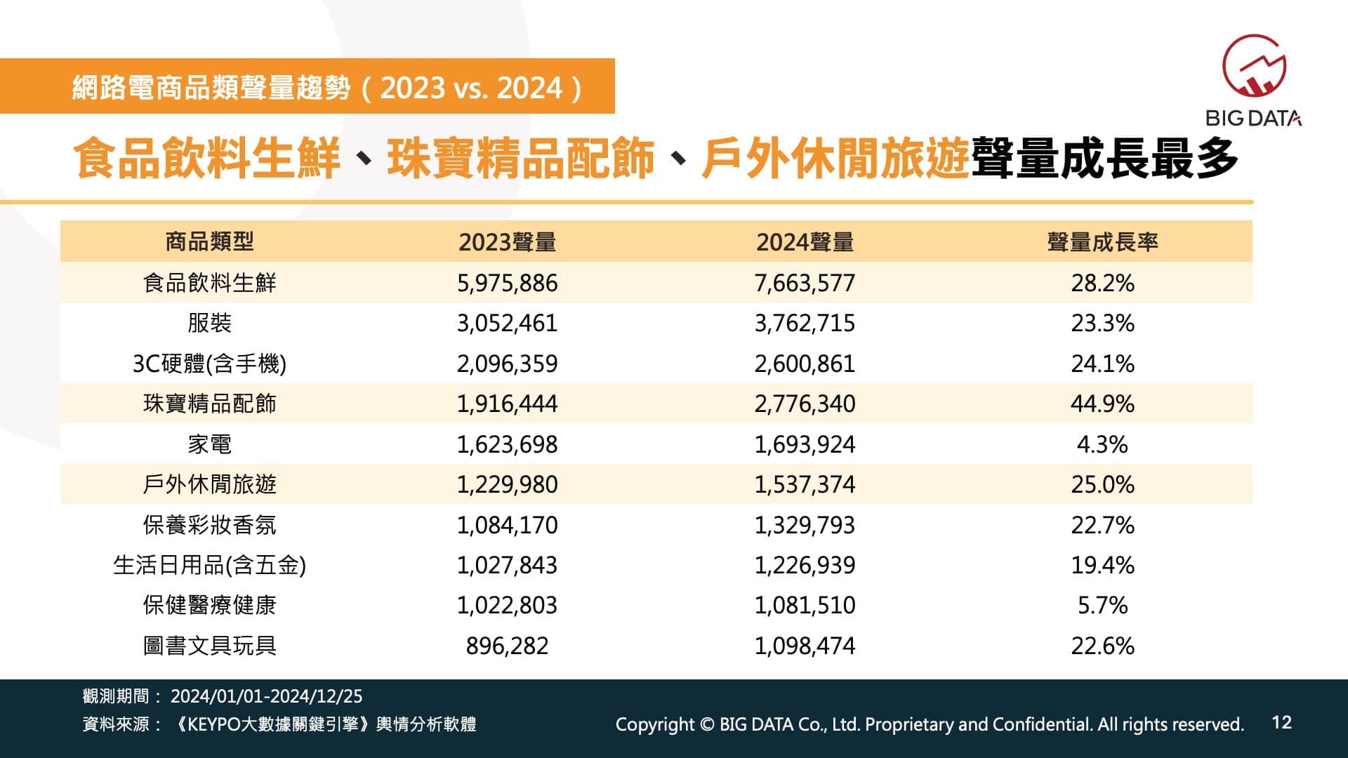 「食品飲料生鮮」穩坐電商品類霸主 年度聲量逾7百萬筆