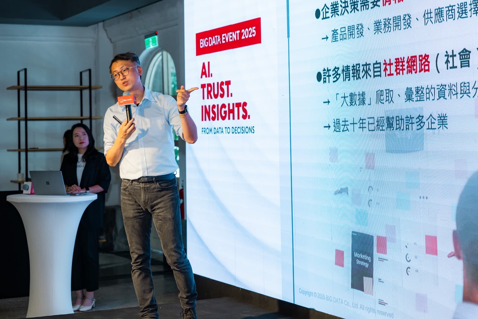 在AI人工智慧逐漸融入各行各業的今天,面對偽冒、詐騙、錯假訊息日益猖獗的環境,如何確保數據真實性、模型可驗證性與資訊來源可靠性,已成為品牌與消費者之間最重要的信任基礎。大數據(股)公司在BIG DATA EVENT 2025首次邀請國立臺灣大學資訊管理學系孔令傑副教授分享並指出,企業在決策過程中仰賴大量來自社群網路與大數據的情報,但面對不實、錯誤與虛假資訊的風險,如何取得可信任的資訊成為關鍵挑戰。AI 科技正扮演重建信任的重要角色,透過智能分析與過濾,協助企業「相信可以相信的資訊、供應商與客戶」,為決策提供穩定可信的數據基礎。