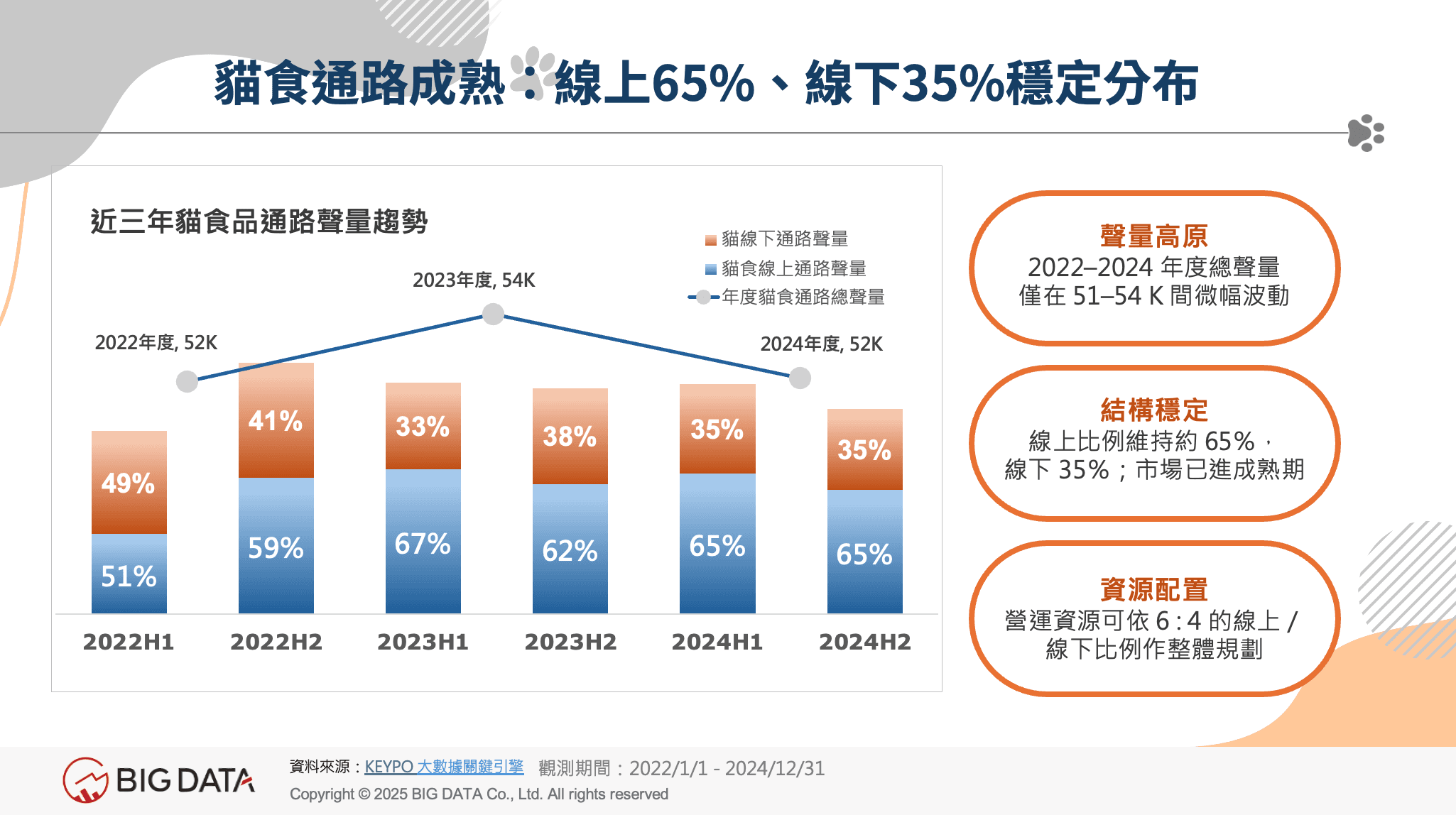 雖然線上通路聲量增長顯著,但報告也指出,實體寵物專門店與超市量販的線下聲量仍穩居前二,其中專門店聲量年增達60%。關鍵在於消費者仍高度依賴第一線人員的推薦、實體試吃與產品說明,特別是在「換糧」、「罐頭機能判斷」、「成分選擇」等情境。無論在線上或線下,能否建立信任感、回應健康需求與提升資訊透明度,將是未來品牌爭奪消費者心佔率的關鍵。