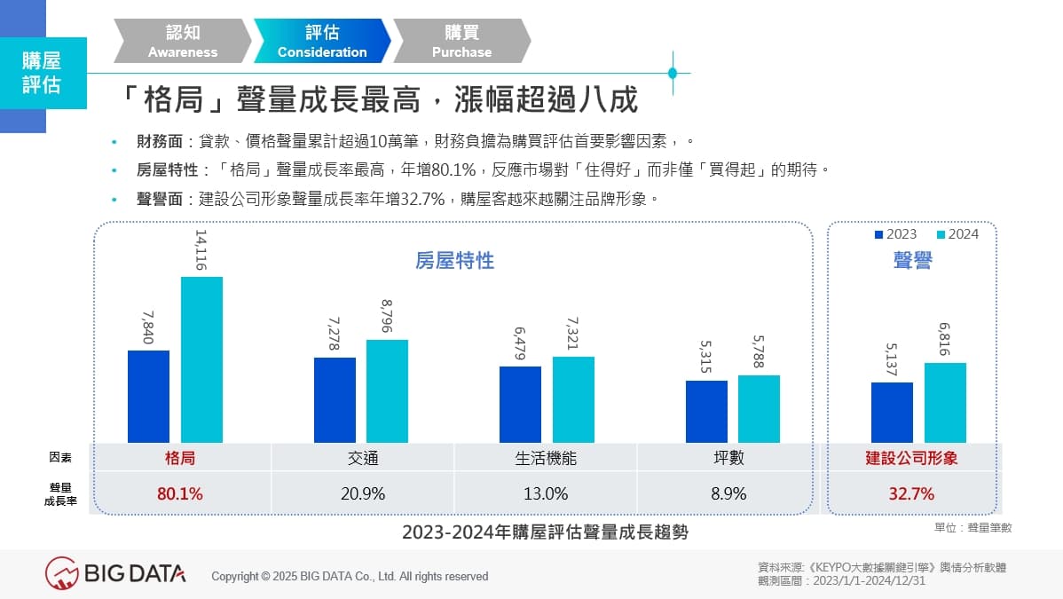 「房屋格局」聲量年增超過八成 「服務」、「口碑」緊跟其後